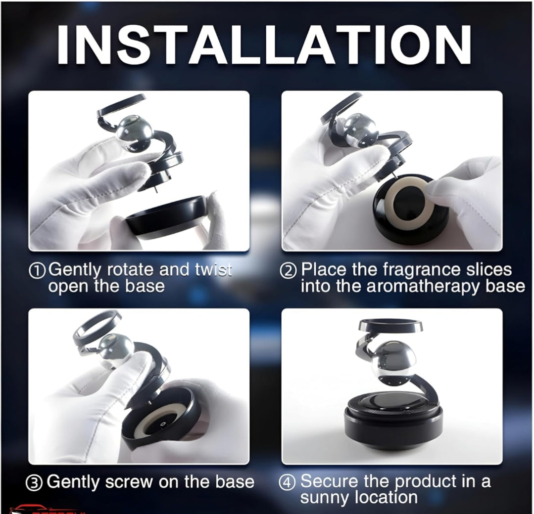 Solar Powered Car Air Diffuser–Refillable Rotating Dashboard Air Perfume Purifier for Cars, Aromatherapy Decor, Autorotation Accessories for Car Interior, Levitating Fragrance Diffuser-Black