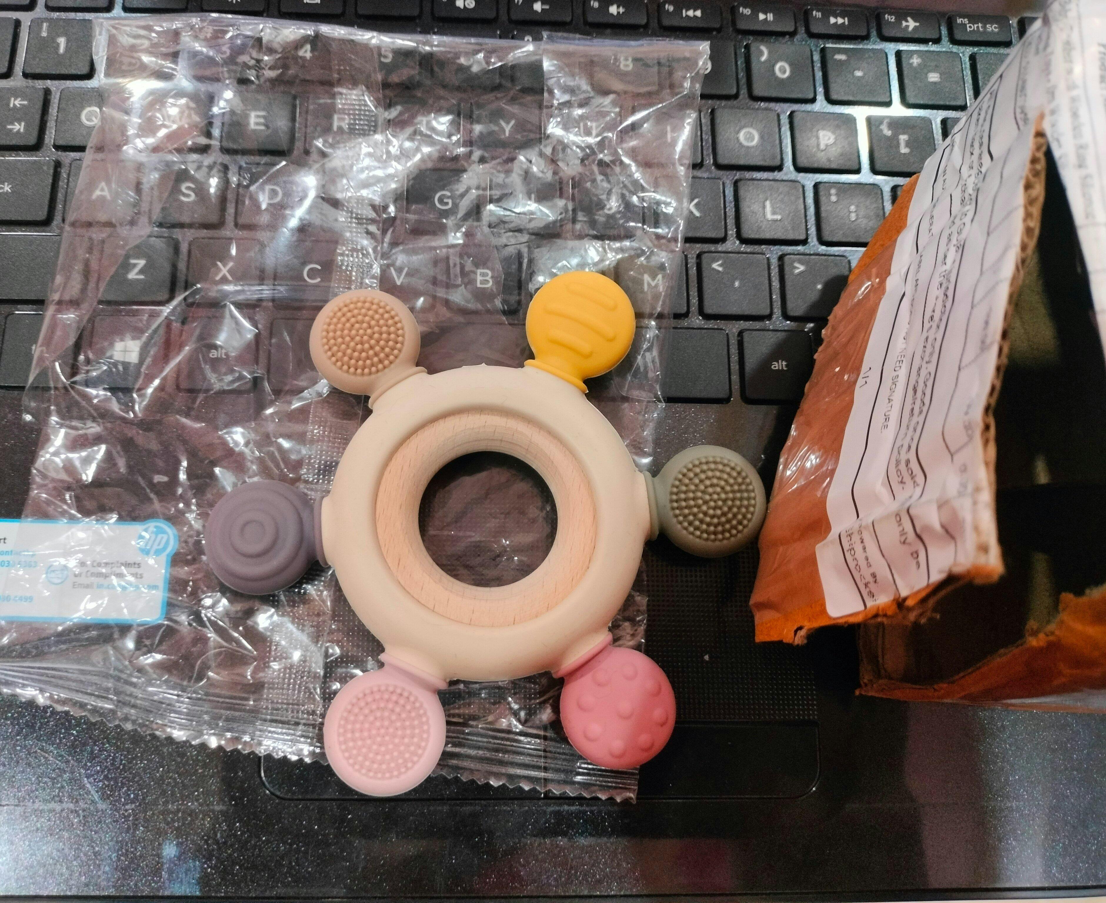 🪵 Natural Wooden Ring – आसानी से पकड़ने योग्य, हल्का और बेबी-फ्रेंडली।